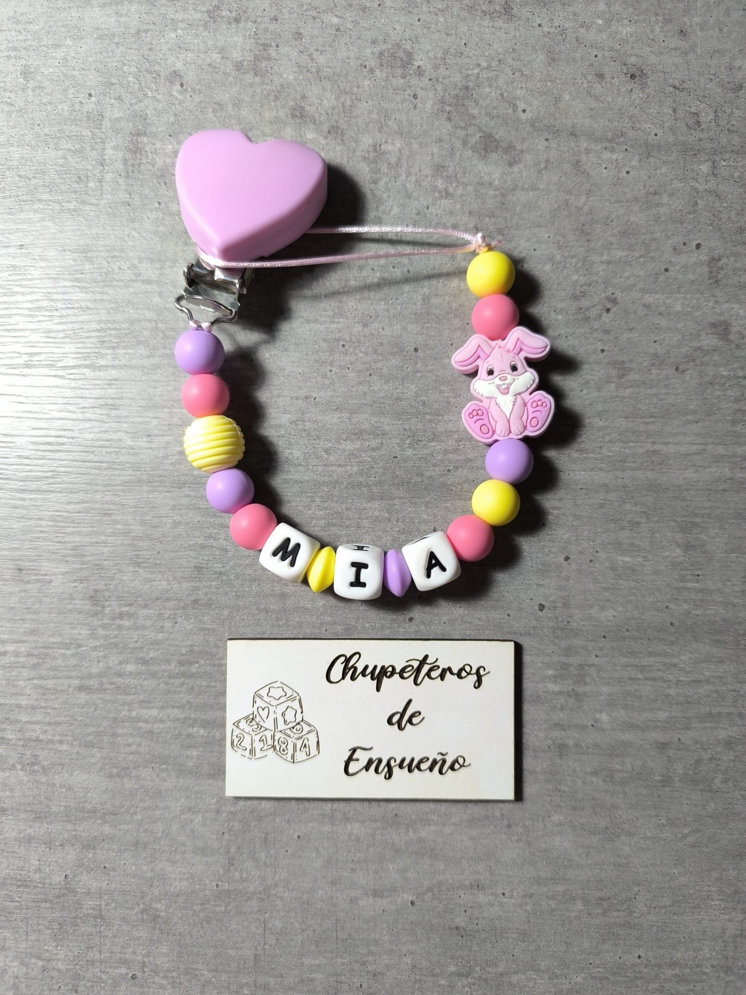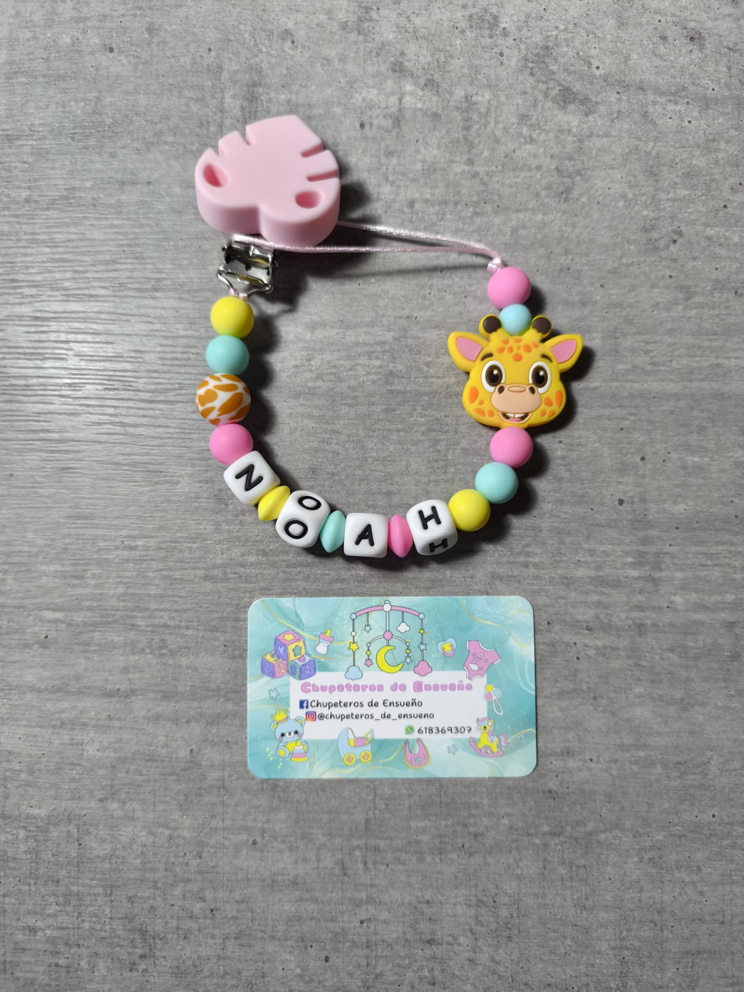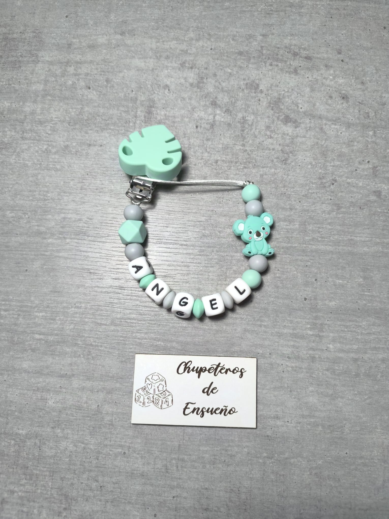 Chupetero de silicona alimentaria personalizado con el nombre del bebé y decoración No Disney