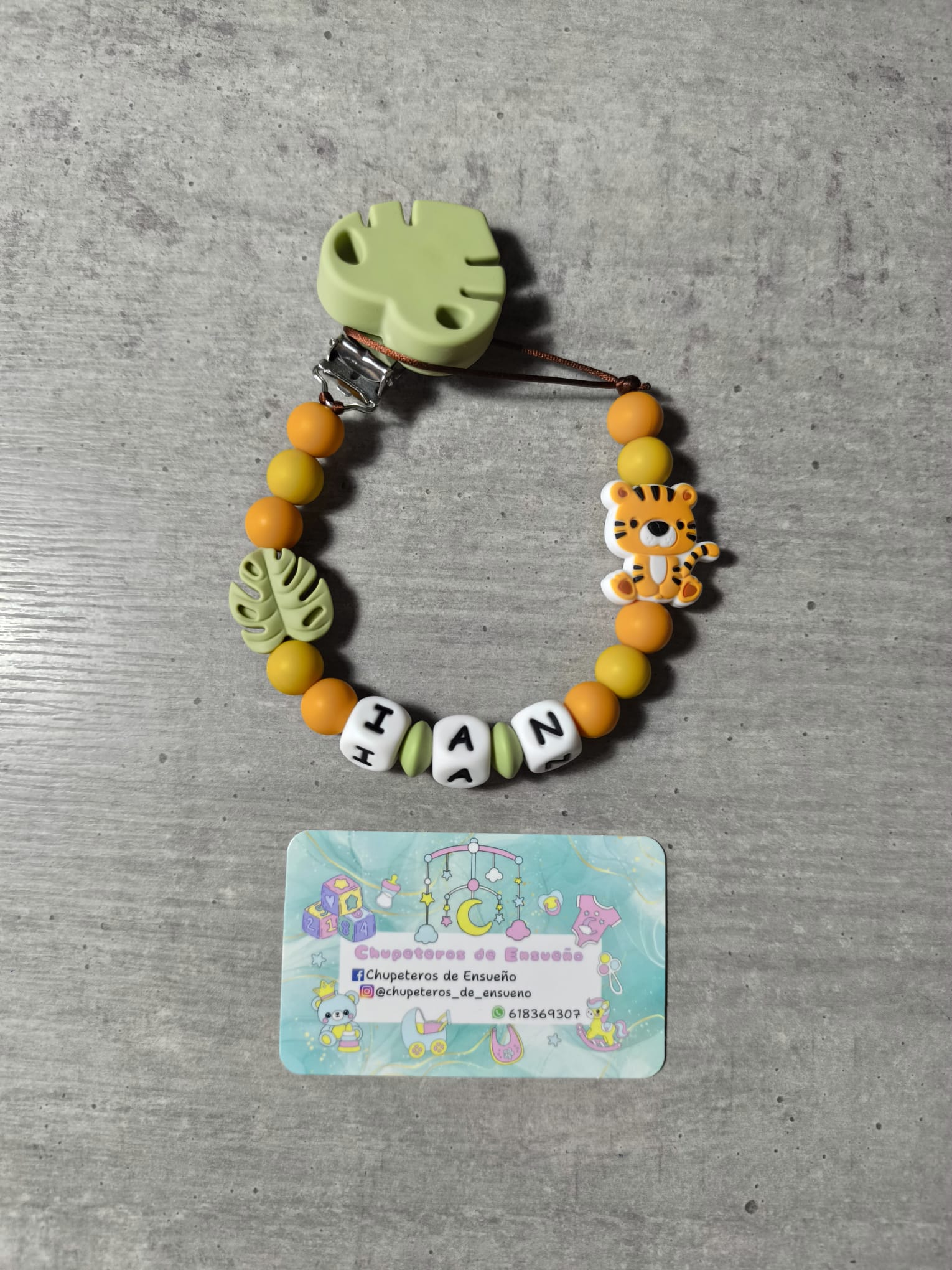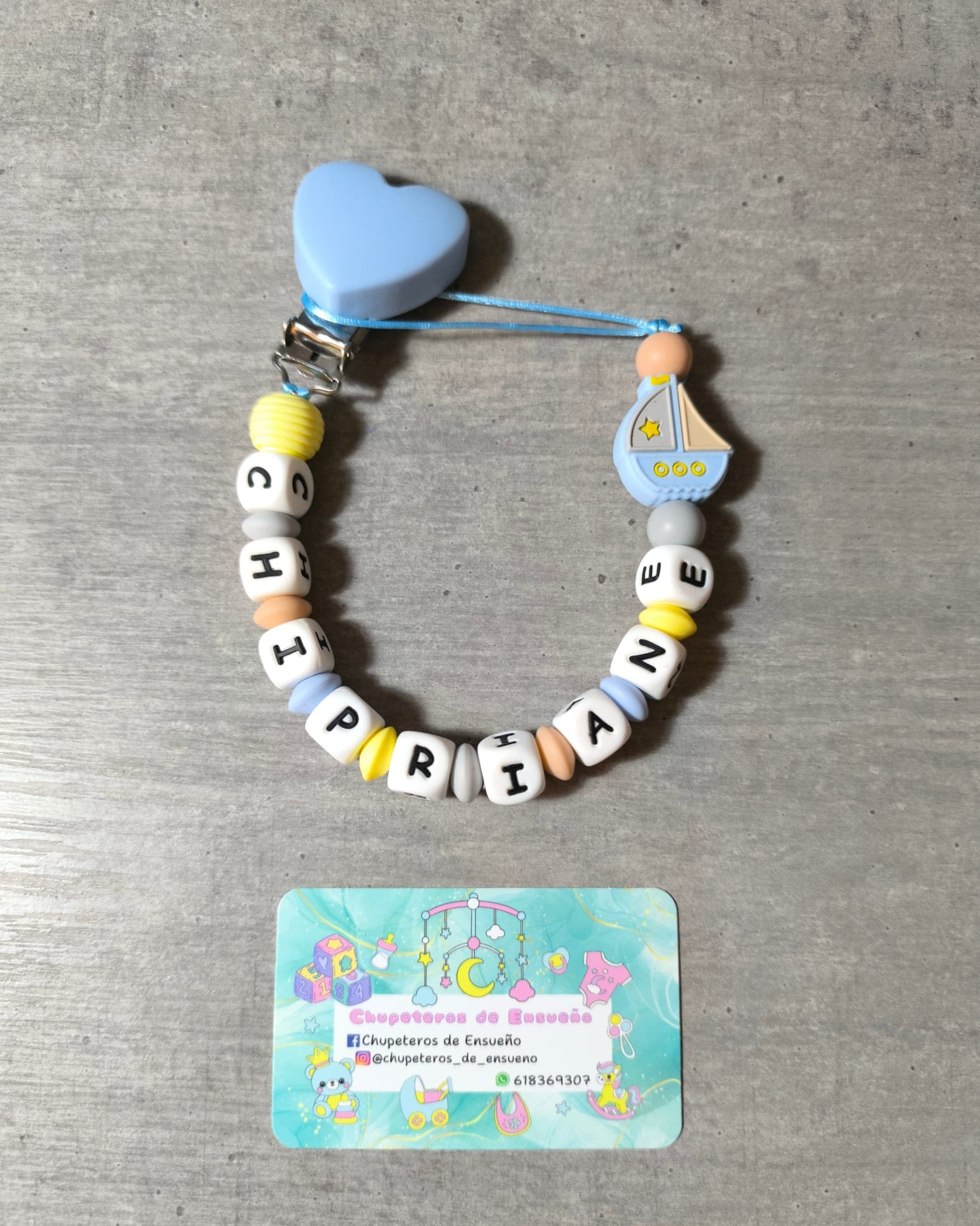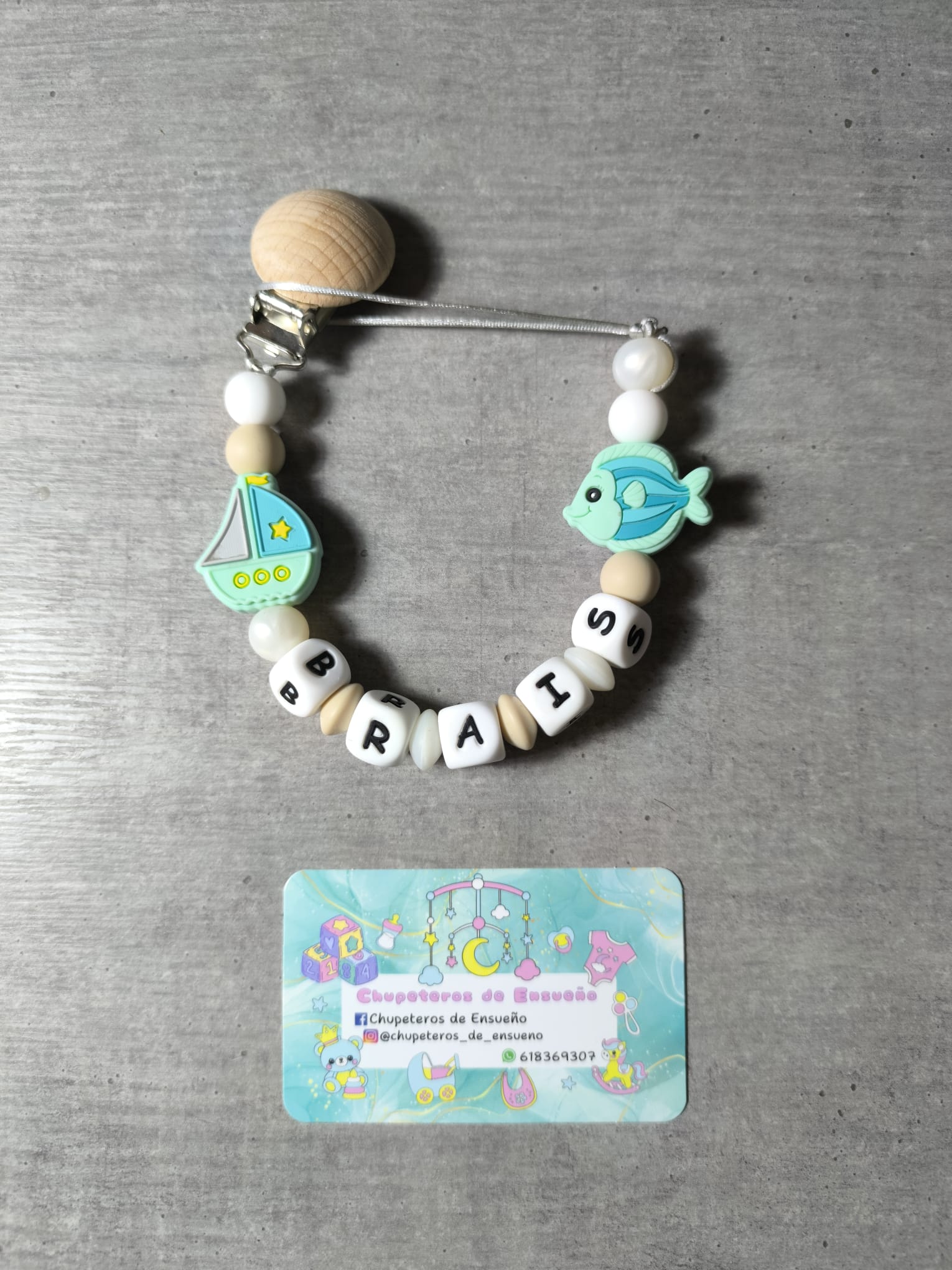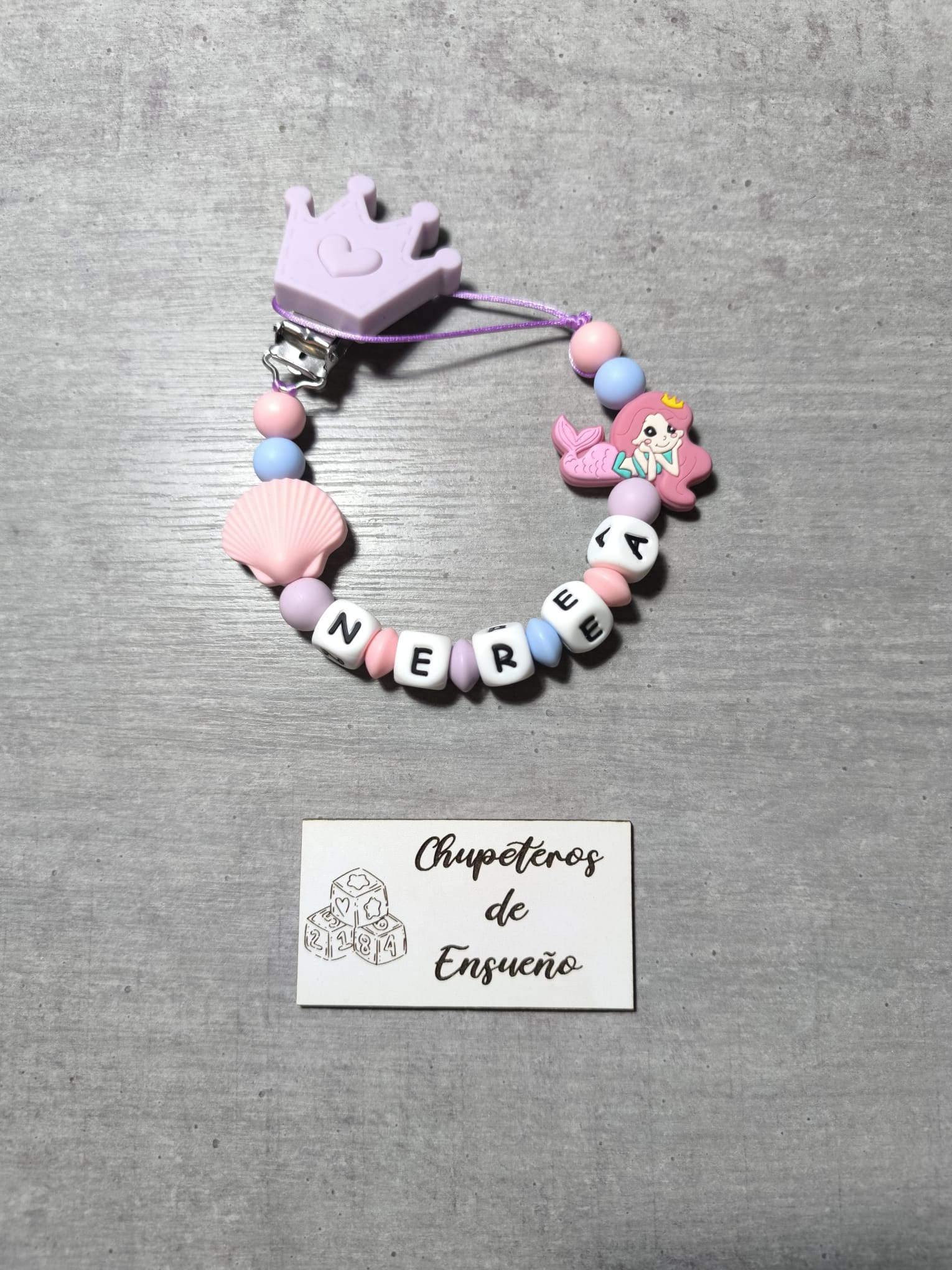 Chupetero de silicona alimentaria personalizado con el nombre del bebé y decoración No Disney
